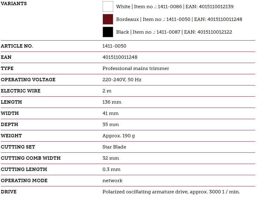 ریش تراش موزر ۱۴۰۰ مینی دارای تیغه با سایز اصلاح ۰.۳ میلیمتر می باشد که پایینترین سایز اصلاح بین دستگاه های موزر اصل هست و برای خط زنی مناسب می باشد.